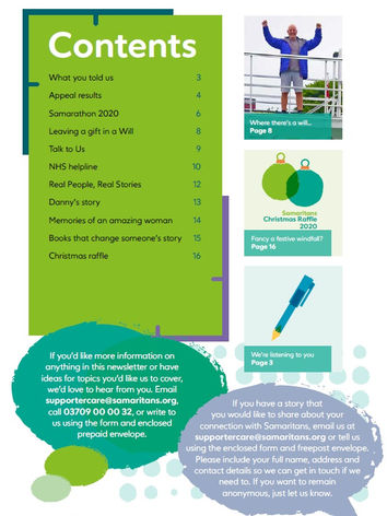 Each spring and autumn, Samaritans send their regular donors a 16-page newsletter to update them on the charity's work and drive engagement and donations. It's very popular with their supporters and provides a regular boost to their campaign income.